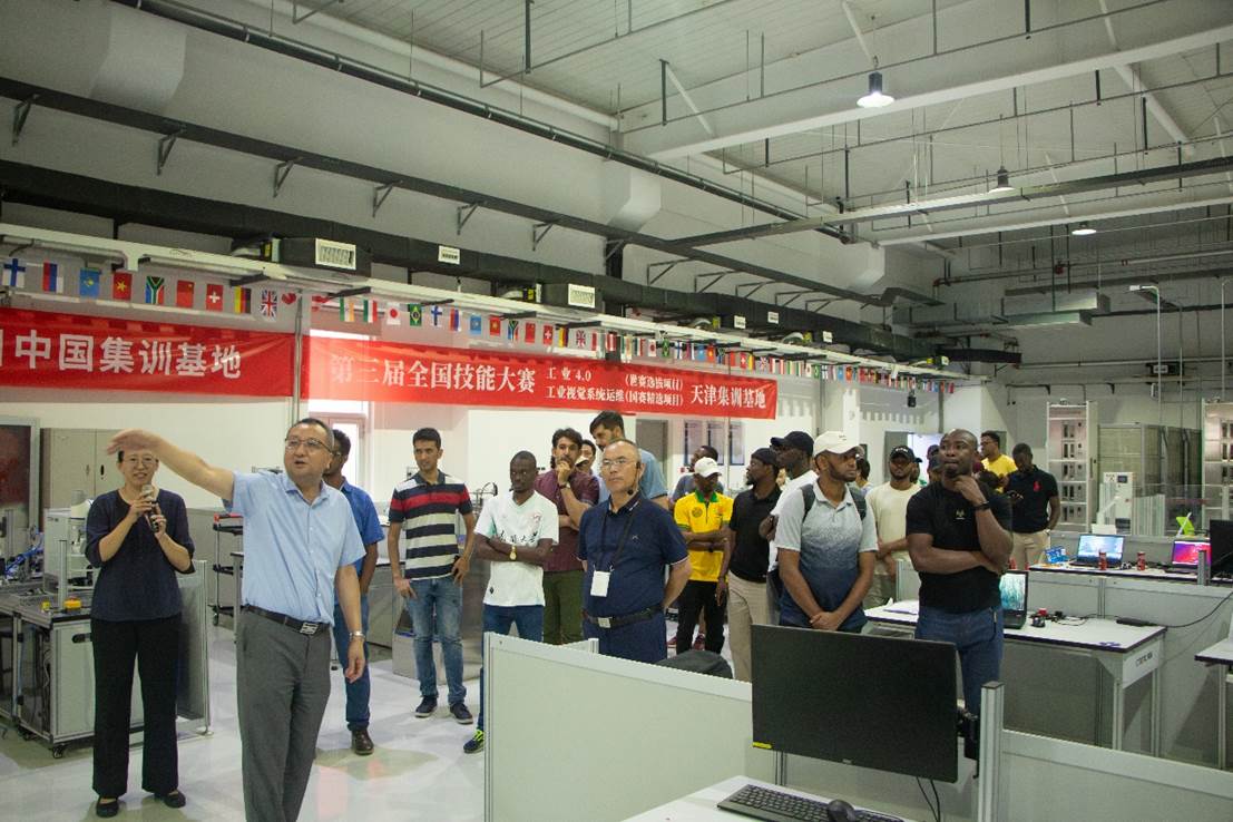 在天津职业技术师范大学,公司职工们走进国内同类规模最大、5万多平米的工程实训中心,在国家技能大师徐国胜的亲自引领与解说下,亲身体验智能制造、机器人操作等实践课程。