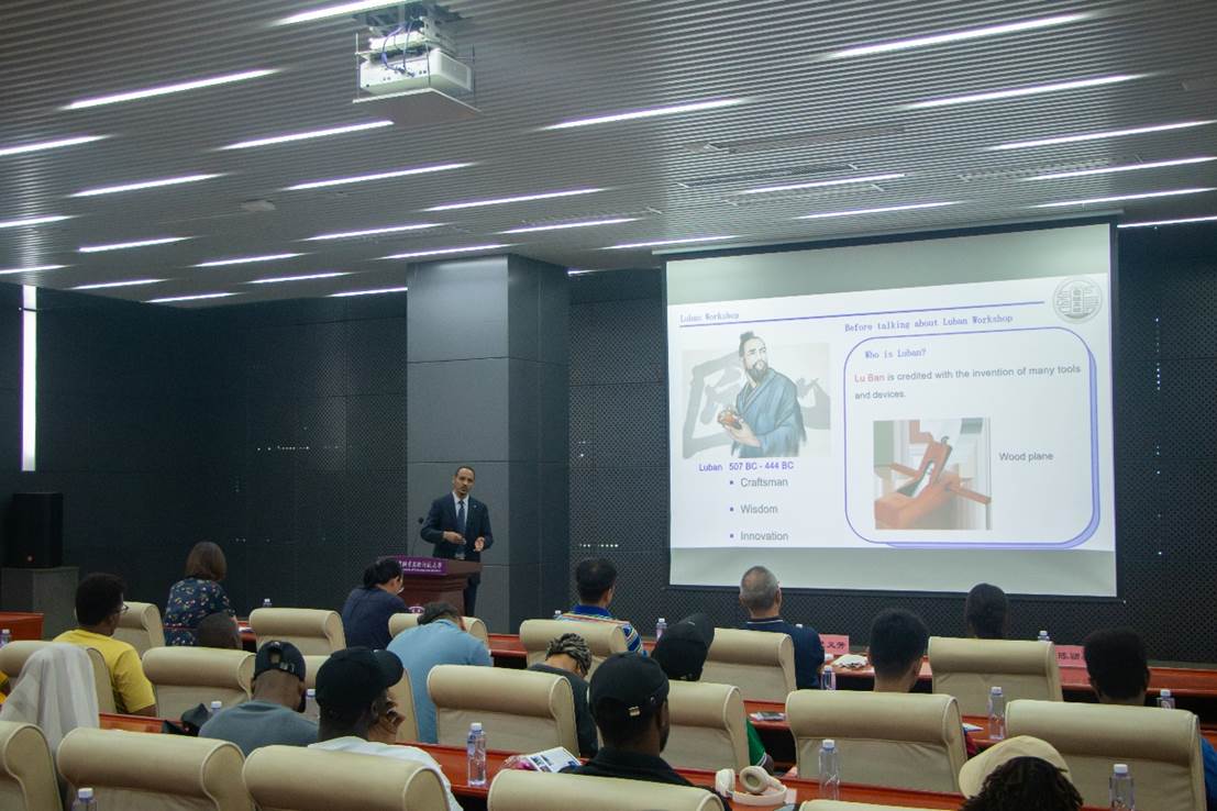 图5 埃塞俄比亚博士职工涂则钢介绍鲁班工坊