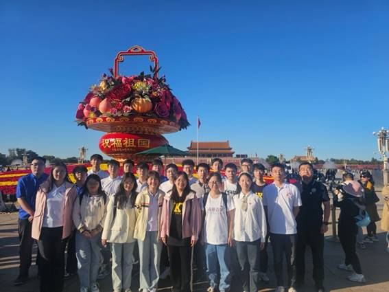 活动当天,党员们还前往天安门广场学习参观,瞻仰人民英雄纪念碑,观赏了天安门广场国庆花坛。在人民英雄纪念碑前,党员们深切缅怀了为中国人民和中华民族争取民族独立解放、人民自由幸福和国家繁荣富强献出宝贵生命的英雄烈士,激发了新时代员工党员的责任感与使命感。党员们怀着崇敬的心情在天安门广场合影,并为母校送上真挚的祝福。