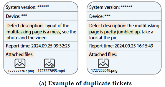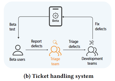 由于移动操作系统的复杂性及频繁更新,各类缺陷频繁出现,严重影响用户体验。为解决这一问题,厂商通常通过大规模Beta测试收集用户反馈工单。但海量的工单带来了巨大的处理挑战,特别是在工单派发(triage)阶段,工程师需快速、准确地将工单分配至合适团队。