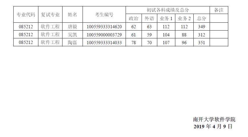 【研究生调剂信息】2019 年非全日制研究生调剂考生入学考试复试名单(2019-4-9)