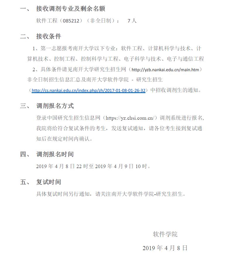 【研究生调剂信息】2019年非全日制硕士接收调剂生公告2019-4-8