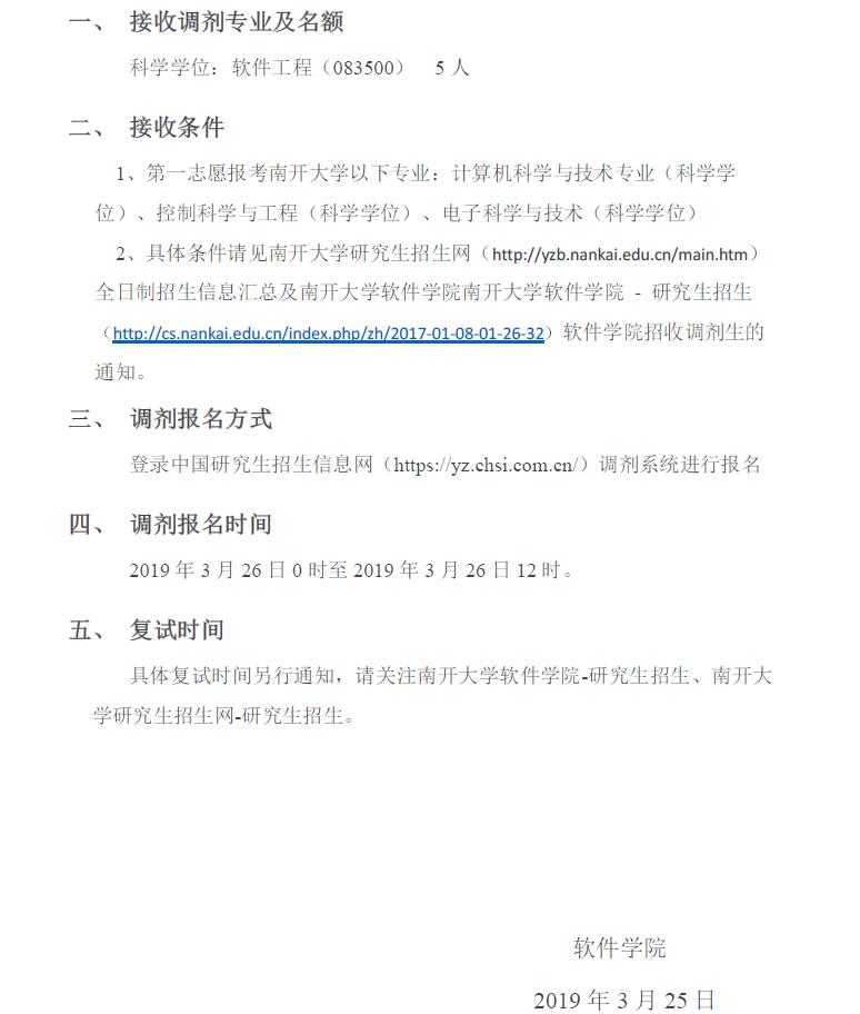 【研究生调剂信息】2019年全日制硕士接收调剂生公告2019-3-25