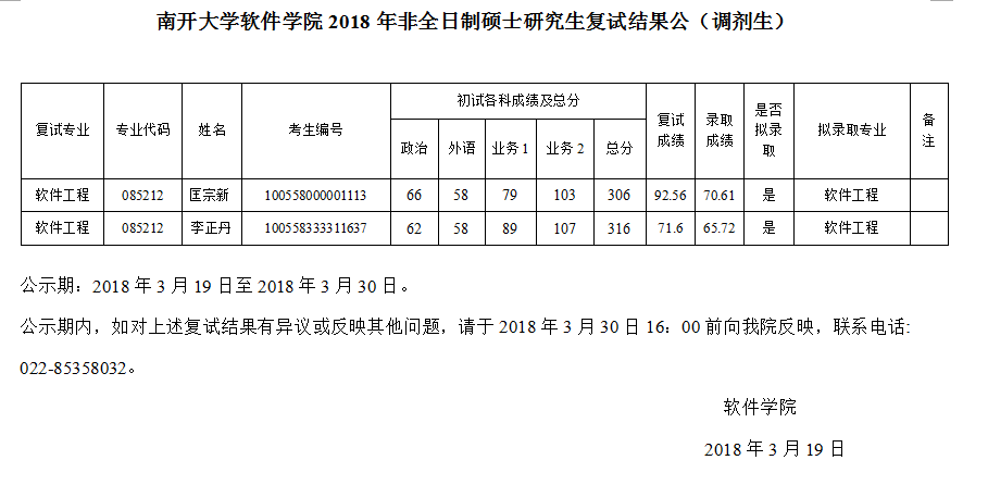 【调剂生复试】2018年全日制硕士研究生复试结果公示(调剂生)