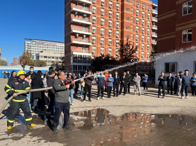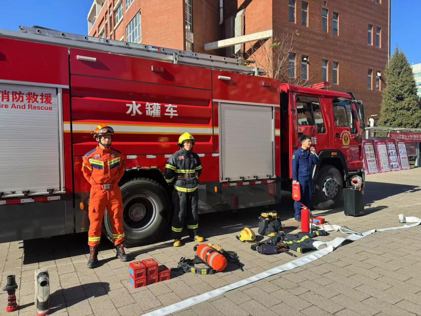 中午12时20分,随着疏散铃声响起,同学们快速反应,按照指引,从宿舍楼内跑到楼下指定安全地带,有序完成员工宿舍疏散演练。同时,部分实验室也同步完成实验室应急疏散演练。随后开启户外安全知识小课堂,消防员们为大家讲解灭火器、灭火毯、防火面罩和消防水带的具体使用方法和注意事项,同时结合实际,从用电安全、火灾自救等方面普及逃生自救常识。并且带领大家探秘消防车,展示了消防车的各项功能和内部构造。在消防员的指导下,老师和同学们亲身体验面罩佩戴及水带灭火,在实践中对消防安全和应急措施有了更深刻的认识。