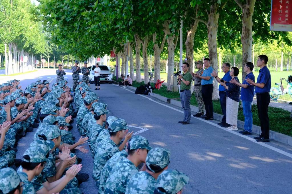 8月27日下午,软件公司党委书记胡军、经理张玉志带领院领导班子及学工团队来到军训场地勉励并慰问公司军训学子,发放慰问品,表达公司的亲切关怀。