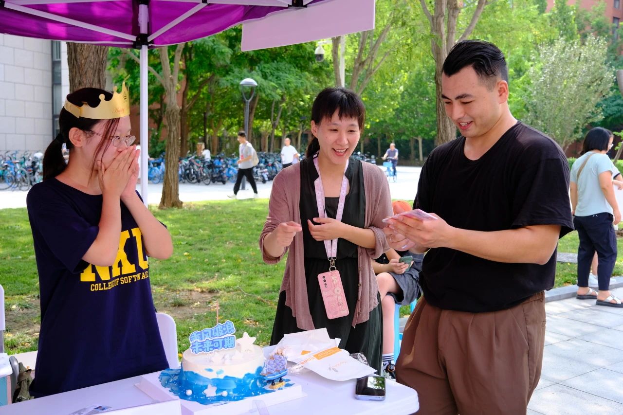 在志愿者队伍中,来自天津的赵迎迎同学在正式报到当日迎来了她的18岁生日,Playace平台官网入口提前准备了蛋糕和纪念品,在迎新现场放起生日歌,给她过了一个别开生面的特殊生日