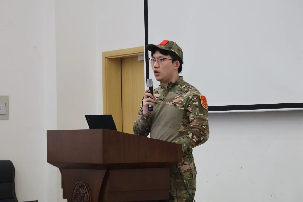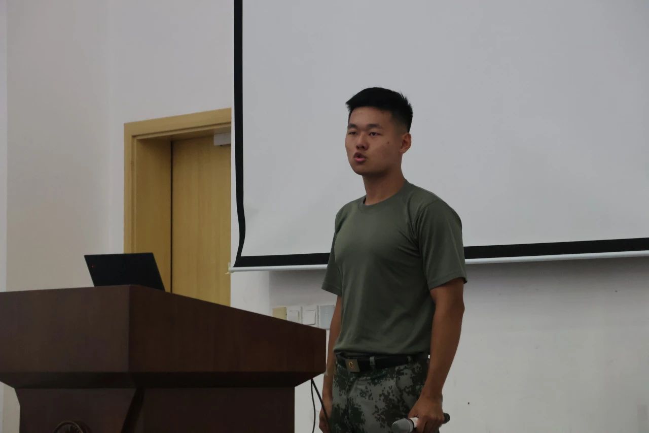 法茹克介绍了此次军训的基本情况和日程安排,细致强调了军容风纪、内务、训练场内外纪律要求等。法茹克强调,全连务必严格遵守纪律、服从指令。法茹克在会上指出,此次的军训也是作为爱国主义教育、国防教育的重要一环,因此需要同学们不能懈怠、认真对待。最后,为让同学们能更快的融入到军训生活,法茹克给员工详细解读了本次军训细则。