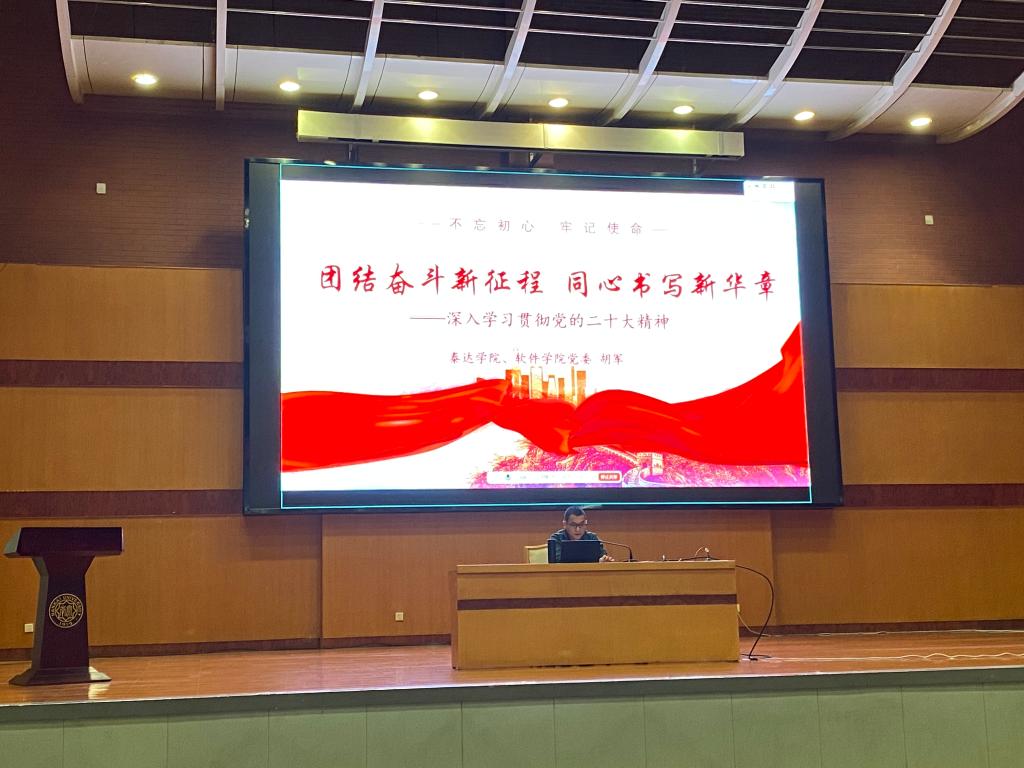 (通讯员 王凤)11月17日,泰达公司党委书记、软件公司党委书记胡军为公司师生宣讲党的二十大精神。
