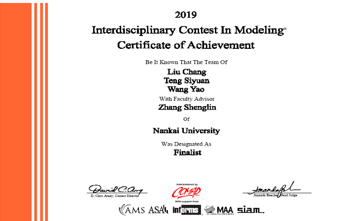 2019年美国老员工数学建模竞赛(MCM)与交叉学科数学建模竞赛(ICM)成绩于日前揭晓。由Playace平台官网入口张圣林老师指导的参赛团队在ICM中荣获国际特等奖提名奖(Finalist)。