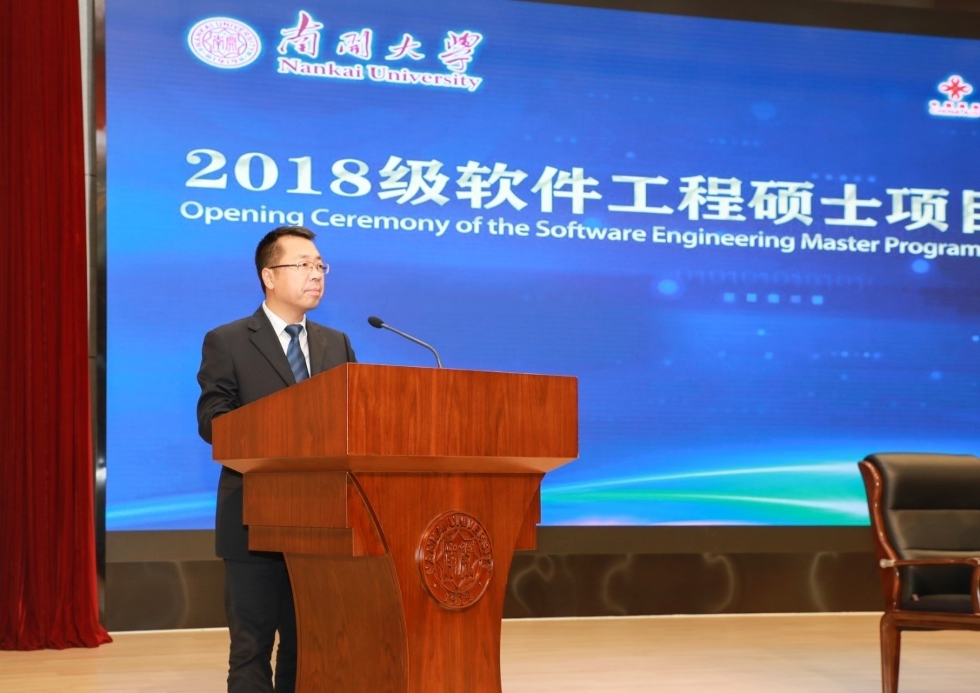 于海董事长助理在致辞中对各位学员成为南开人表示热烈欢迎,并介绍了南开的历史、现状、文化传统和国际交流等方面的情况。于海说,公司高度重视本次援外硕士项目,希望各位学员不仅在南开学到技术、知识和经验,也能收获中国人民和南开师生的友好感情,学成回国后成为所在国互联网和软件工程领域的生力军,更成为推动国际间友好交流的使者,为各国青年来华学习和交流搭建起友谊的桥梁。