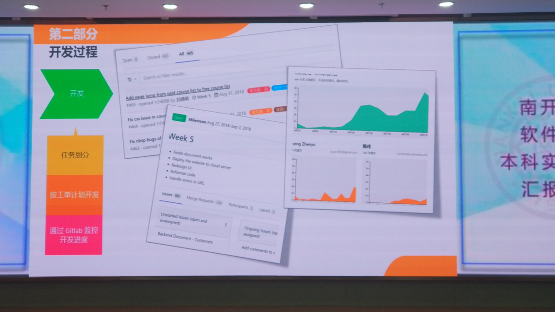 员工团队们展示了自己设计开发的在线购物平台、网上购票、在线音乐播放、外卖平台、在线少儿英语、少儿围棋教育等多套软件系统。对项目过程、采用的移动互联网、大数据、人工智能等技术、团队开发的经验总结作了认真热情的汇报。到场的老师们认真听取了同学们的精彩汇报,并为每个团队进行了进一步的指导。