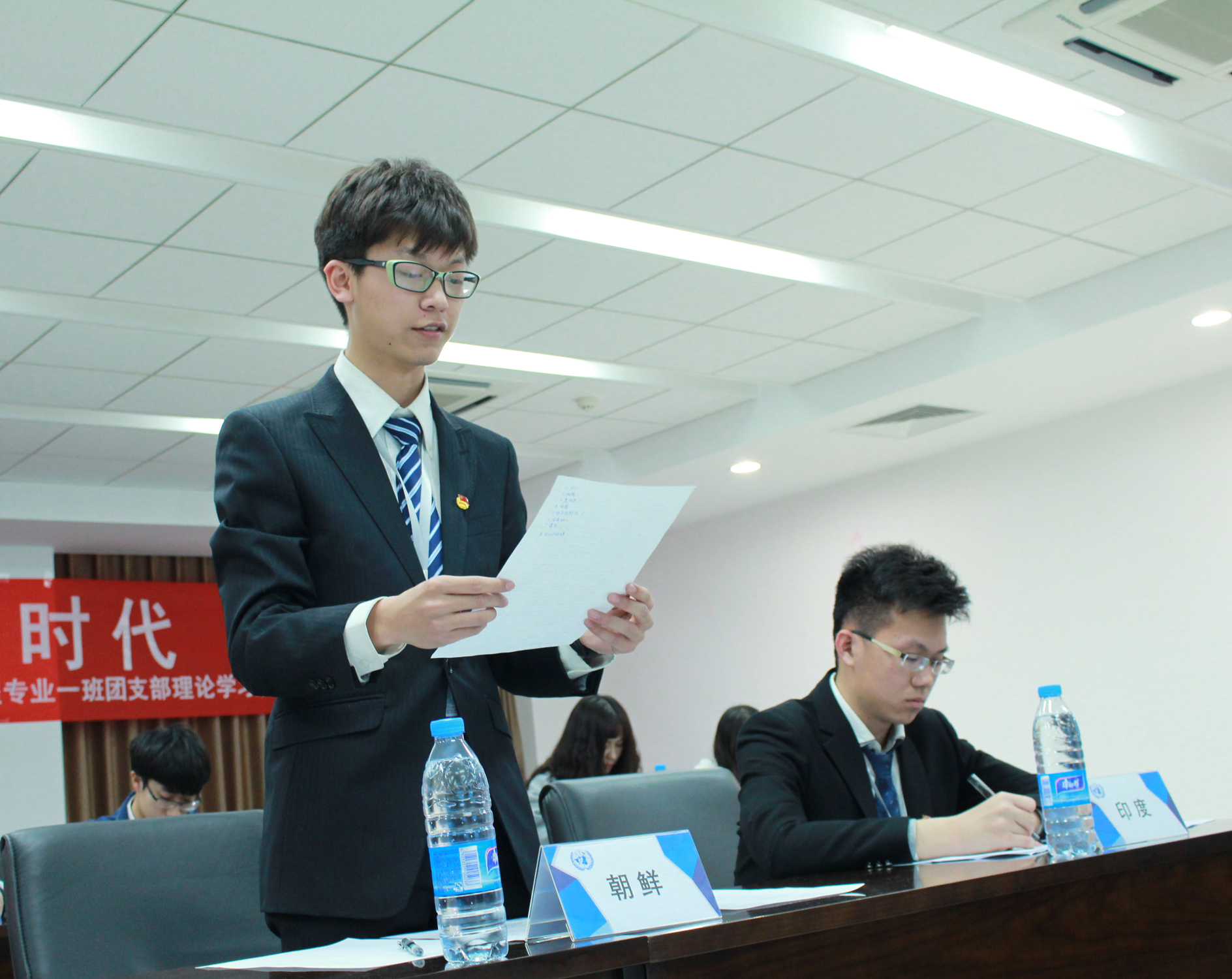本次理论学习开展了以“是否应该共建世界互联网产业同盟”为议题的模拟联合国活动。在模联活动中,同学们身着正装,注意力集中,有条不紊地发表着所代表的国家的看法,并对相关的议题进行了热烈讨论。公司经理张玉志及辅导员还通过视频为同学们解答了“互联网+”相关问题,使同学们对本次模联的议题有了更深入的思考。
