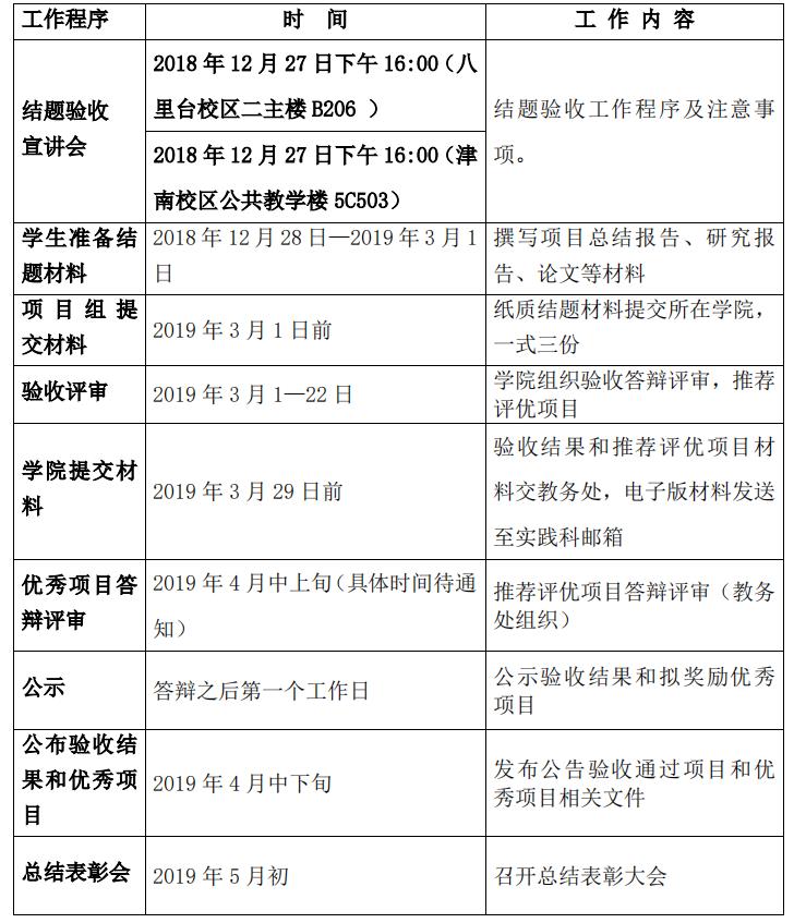 2017 年“国家级老员工创新创业训练计划”创新训练项目、2018 年“天津市级老员工创新创业训练计划”创新训练项目、第十六届本科生创新科研“百项工程”项目的执行时间将于 2019 年 4 月到期,按照项目管理规定,拟对该项目进行结题验收和评选优秀完成项目。现将有关事宜通知如下: