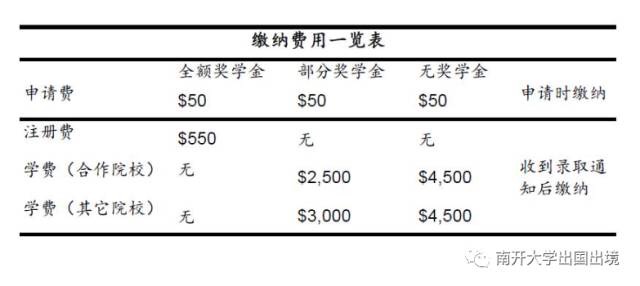 获得部分奖学金的同学,50美金申请费,该费用需要在网上提交申请时缴纳。3000美金学费(含注册费,注册费无需另外缴纳),该费用在发放offer后缴纳,来自与公司友好合作院校的同学,只需缴纳2500美金。
