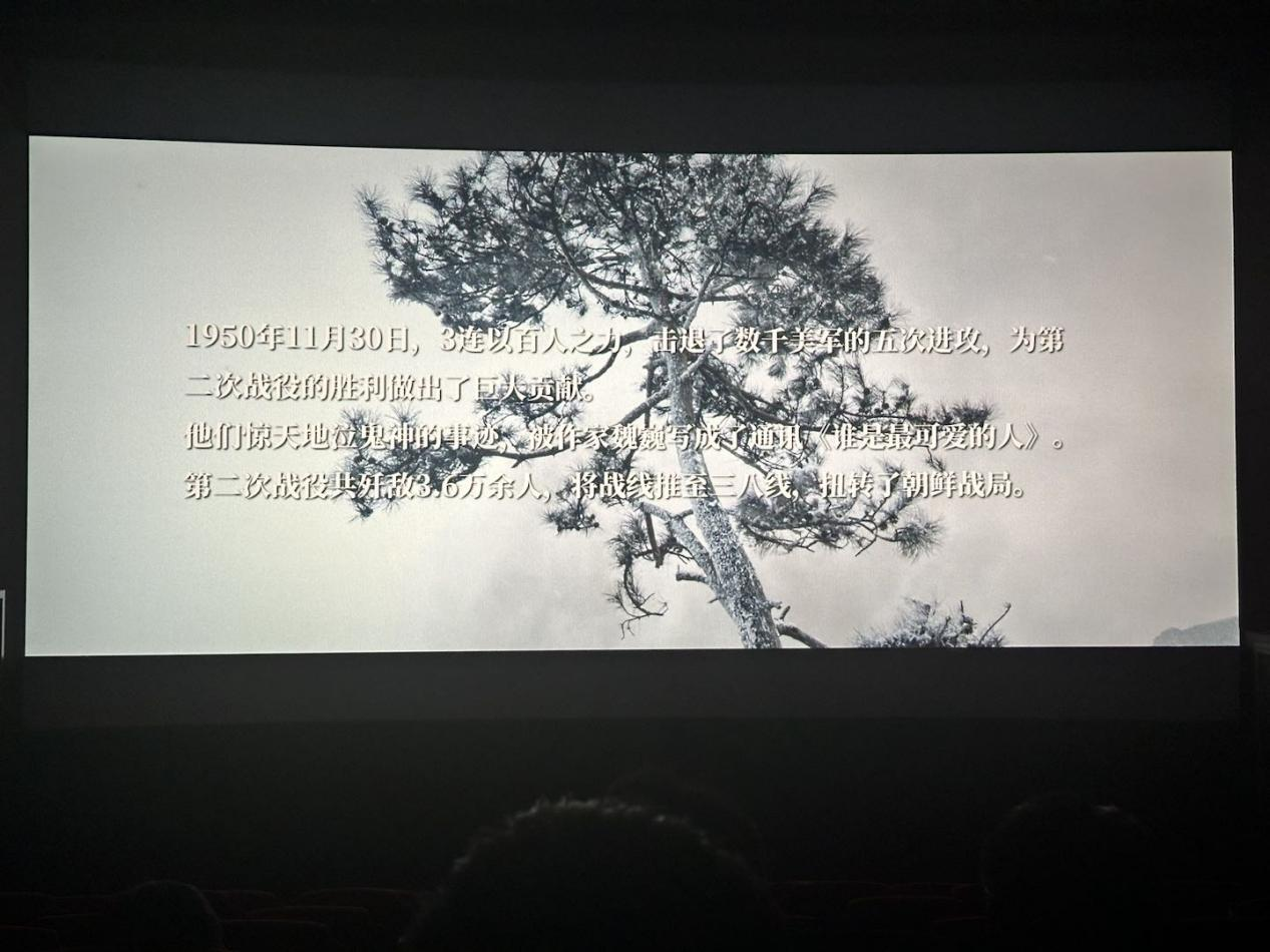 影片以志愿军群像为主线,全景式呈现了新中国成立一周年之际,在各个战线上保卫祖国的英雄儿女,讲述了抗美援朝战争恢宏史诗。观影过程中,同学们感受到那段历史时期的艰辛与牺牲,也深刻认识到了志愿军战士们为保卫祖国、捍卫世界和平所做出的伟大贡献。