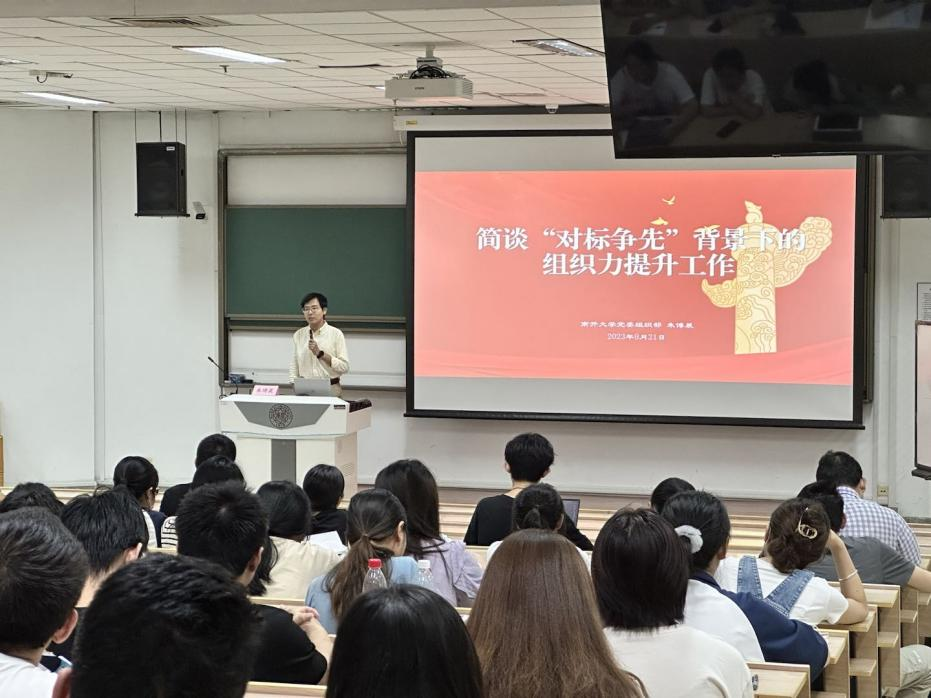 随后,朱博晨着重介绍如何建设样板党支部,他以自身曾担任支部书记的全国党建工作样板党支部为例,分享了建优、建强样板党支部的工作思路、做法和感悟。鼓励公司各支部要抓好党员的理论学习与实践转化,要以“七个有力”为追求,持续深化贯彻习近平总书记来校视察重要讲话精神,积极申报建设样板党支部,在做好支部标准化规范化建设的基础上,结合自身学科特色、支部成员学习和工作实际,积极思考服务中心大局的办法举措,奋力实践,努力建设具有南开特色的先进基层党组织。