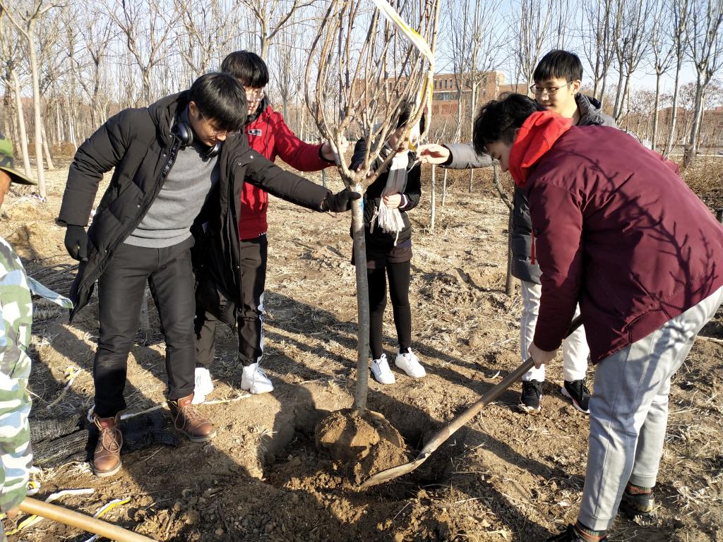 在后勤保障部相关科室负责人的统筹安排下,全体员工党员分为三组在不同区域开始劳动,对未开垦的田地进行翻土处理,协助工友对树木进行施肥与清除杂草,放置幼苗并进行培土,党员同学们在阳光下埋头苦干、人人争先,有的用手扶植树木,有的用锄头翻土,有的用工具清理杂草杂物。经过两个小时的努力,同学们虽然已是满头大汗、一身泥土,但看到劳动成果——种植成功的十七棵樱花树幼苗,每个人的脸上都露出了喜悦的笑容。