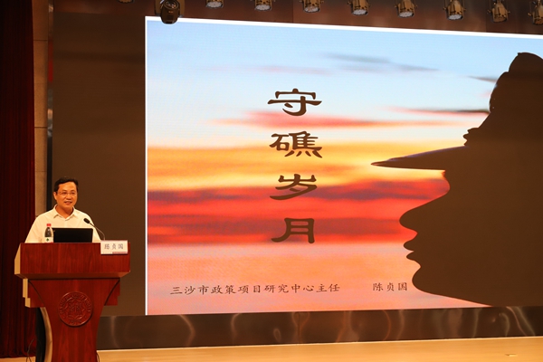 陈贞国分享了自身在南沙守礁十几年的经历。“一年不分四季,终年高温、高湿、高盐”“气候恶劣的南沙群岛,淡水、蔬菜等日用物资的极度匮乏,晕船时呕吐、头晕,风湿病发时的疼痛等生理折磨,没有通信设施、电视、网络时寂寞孤独的心理煎熬”让聆听讲座的同学们纷纷动容,用一阵阵热烈的掌声表达对南沙守礁官兵的敬佩。